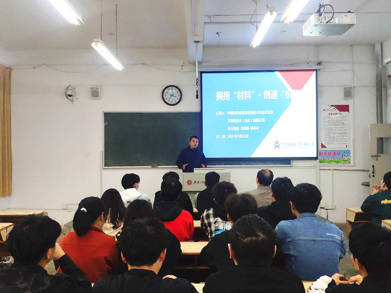3月31日下午,材料学院在2教105举办2021年首场校友创业大讲堂。材料成型及控制工程专业2008届校友、艾坦姆合金(山东)有限公司执行董事、总经理郏洋洋应邀小宝寻花 2020级学生作题为“拥抱‘材料’ 创造‘价值’”专题报告。