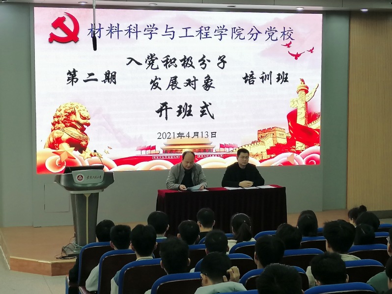 开班式在全体奏唱国歌中拉开序幕。田园介绍了培训班班委会组成及分组情况,宣读了培训班学员管理和组织纪律。材料181班曹庆楠同学作为学员代表发言并承诺:在培训班中,将发挥好学生干部的模范带头作用,严格遵守培训班纪律,努力提升党性修养,时刻以党员的标准严格要求自己,勇担时代使命,为共产主义事业奋斗终身。