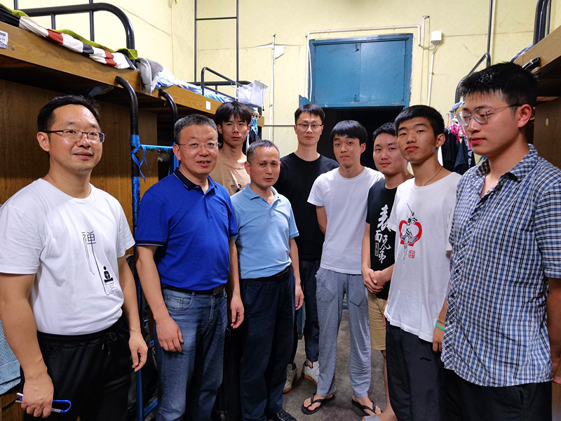 6月17日晚上,小宝寻花 党政领导王勇智、左如忠、方玖胜、朱协彬,系部主任、支部书记及毕业班辅导员到男生宿舍17、18、20号楼和女生3号楼亲切看望毕业生。