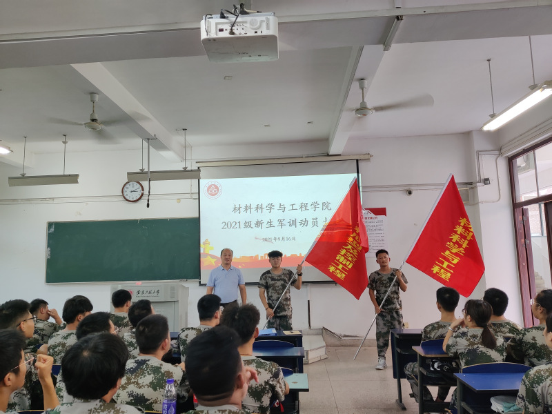 最后,方玖胜授旗并作动员讲话。他强调开展大学生军事训练的必要性和现实意义,指出军训是大学生活的重要一课,为大学的学习、生活和未来担当起振兴中华民族的神圣使命打好基础,希望新生们能够遵循军训纪律要求,出色地完成军训任务。