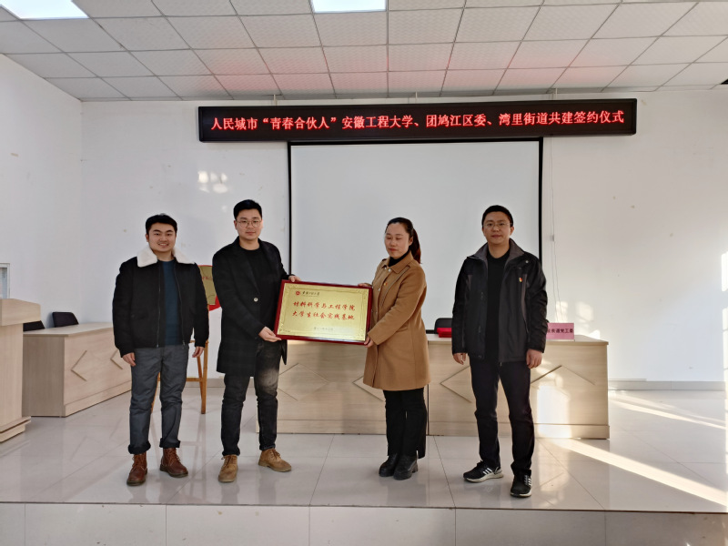 12月2日下午,材料学院团委与共青团鸠江区委员会、鸠江区湾里街道党工委一行来到凤鸣湖社区,共创人民城市“青春合伙人”实践基地,深化校地合作。鸠江区团委书记张倩云、湾里街道党工委副书记蔡怀志、凤鸣湖社区党委书记韦蓉、小宝寻花 团委兼职副书记田园、辅导员鲁力、院志愿者服务队参加此次活动,仪式由张倩云主持。