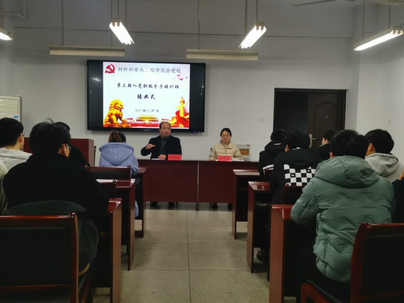 12月7日下午,材料学院分党校第三期入党积极分子培训班结业仪式在B203会议室如期举行。院党委副书记方玖胜出席结业式并讲话,培训班全体学员参加结业式。会议由培训班班主任周冬梅主持。