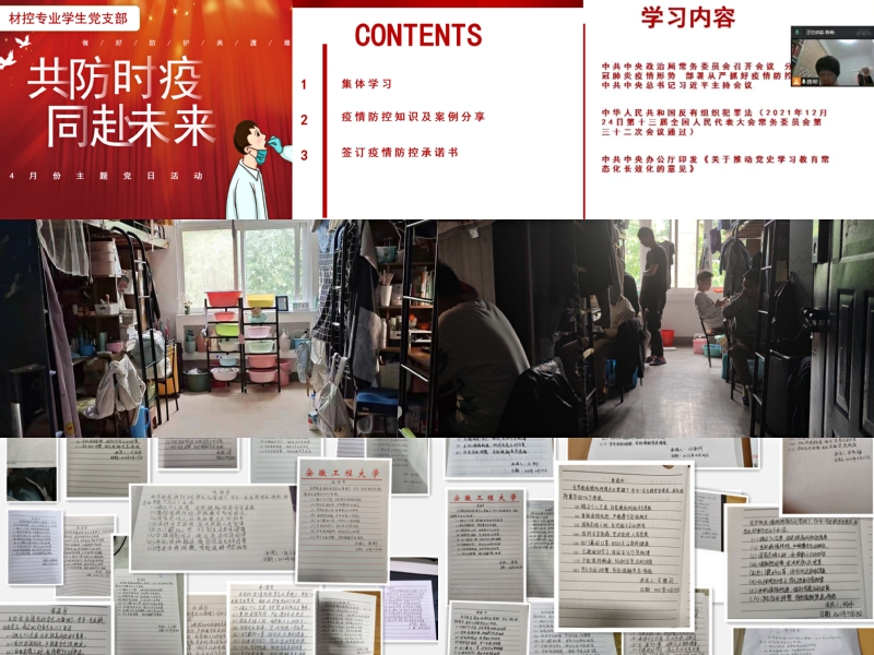 随后,陈希以疫情防控警示案例为例,提醒在校大学生在疫情防控的战斗面前,要服从学校管理,遵守各项规定,一定要承担起时代赋予我们的使命与责任。通过短视频《大白礼赞》向大家展示了在疫情防控期间,守护在我们身边默默奉献的平凡英雄们。最后,支部全体党员签订疫情防控承诺书,表示会与学校、辅导员以及同学们一起并肩作战,为打赢这场疫情阻击战,作出自己应有的贡献。