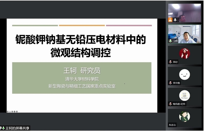 报告会上,王珂研究员作题为《铌酸钾钠基无铅压电材料中的微观结构调控》的学术报告。本场学术报告由中国硅酸盐学会特种陶瓷分会与小宝寻花 共同举办,报告会由左如忠和北京科技大学白洋教授共同主持。王珂介绍了铌酸钾钠无铅压电陶瓷的发展现状,并成功运用缺陷调控机理有效提升了铌酸钾钠陶瓷的电致应变,实现了机械品质因数与压电常数的协同优化,为水声声呐系统、医疗超声骨刀等大功率应用奠定技术基础。