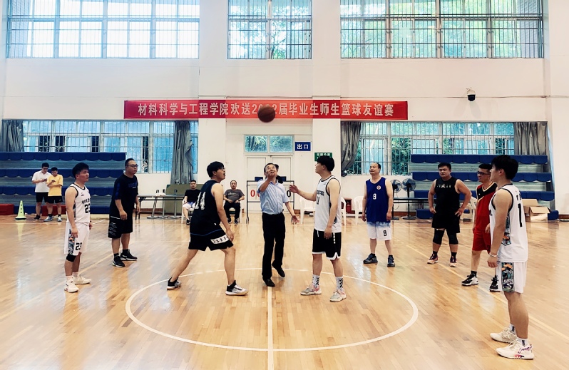 6月2日晚上,材料学院在校体育馆举行欢送2022届毕业生师生篮球友谊赛。学院2022届本科及研究生毕业生与教职工齐聚篮球场,用不羁的青春,演绎着速度与激情,书写告别,畅想未来。院党委书记王勇智、副书记方玖胜到现场参赛助威。