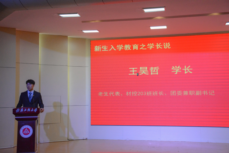 老生代表、学院团委学生兼职副书记、材控203班班长王昊哲同学以自身成长经历鼓励2022级新生:大学生活切勿好高骛远,牢记“一份耕耘就有一份收获”,要永远保持对待工作和学习的热情、对待知识最热切的追求。