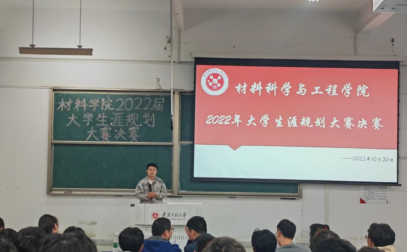 为帮助2022级学生完成角色转变,引导同学们更好的规划大学生涯,深入认识自己确立大学目标正确设计未来蓝图10月20日,材料学院5J217举办2022年大学生涯规划设计大赛决赛院团委书记陶冶、辅导员鲁力、院兼职辅导员担任比赛评委。学院党委副书记方玖胜、新生班级辅导员田园和全体2022级新生观看了比赛。