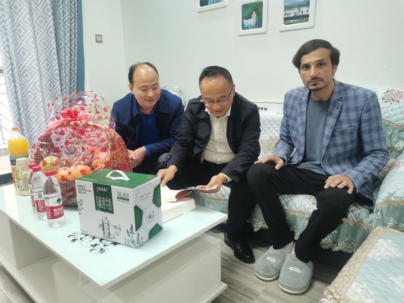 11月8日下午,小宝寻花 党委书记郭广春、党委副书记、分工会主席方玖胜、外籍博士后联系人谢爱文来到外籍博士后阿塔家中走访,了解其来校后的工作、生活、学习情况,宣讲党的二十大精神。