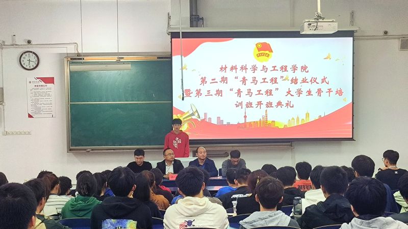 最后郭广春为第三期“青马工程”的学员带来开班第一课,他指出:二十大报告中强调了青年工作的重要性,他希望培训班以二十大精神为主线创新活动形式,通过理论、实践、劳动、竞赛、演讲、创作等形式,学习宣传贯彻党的二十大精神,真正做到内化于心,外化于行;当代大学生应端正自身的态度,作为青马班学员更应该身先示范,从我做起,主动亮身份,做表率,带动引领周围同学为班级、学院、学校的建设和发展贡献材料学子的聪明才智!