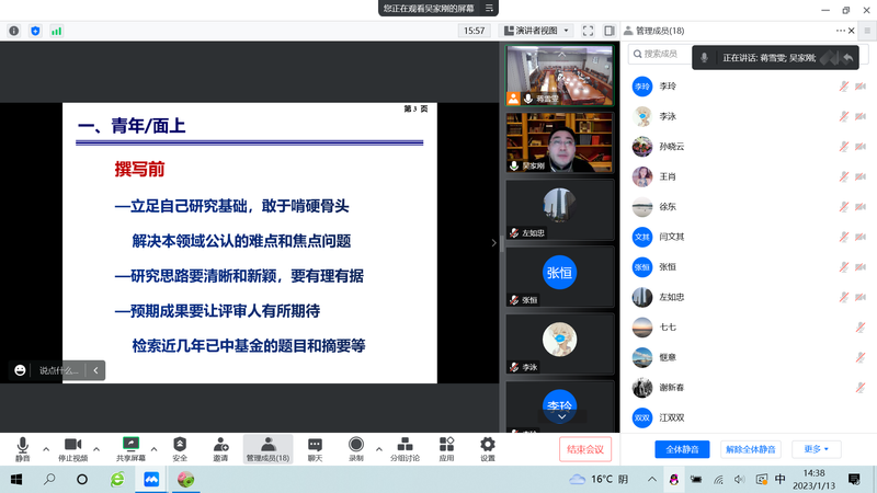 报告会结束后,老师们就申请书撰写过程中所遇到的问题进行提问,吴教授耐心为大家进行答疑解惑。左如忠对吴教授的精彩报告表示感谢,希望老师们认真领会和学习,好好利用假期时间认真打磨申请书,争取在2023年国基申报中取得优异成绩。