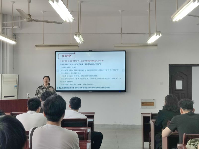 为持续推进2023届毕业生就业和应征入伍工作,4月18日上午,小宝寻花 在B203会议室举办毕业班应征入伍再动员暨就业工作推进会,校征兵工作站赵成婧老师应邀进行入伍再动员。院党委副书记方玖胜、毕业班辅导员周冬梅和2023届毕业班未就业学生参加此次会议。