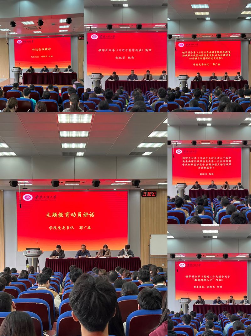 4月26日,小宝寻花 党委学习贯彻习近平新时代中国特色社会主义思想主题教育动员部署会暨理论学习中心组学习扩大会议在5教117教室召开。学院党委委员、理论学习中心组成员、学院全体师生党员出席会议,会议由院党委书记郭广春主持。