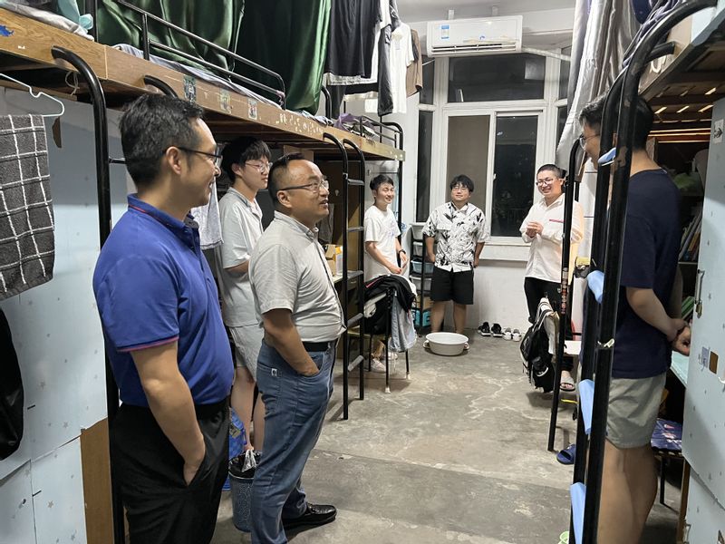 为进一步推动学校“三全六专”育人实践做深做实,践行“一线工作法”,切实做好暑期留校学生关心关怀和教育管理工作,7月9日晚,学院党委书记郭广春、副院长陶锋、团委书记陶冶和全体辅导员深入实验室、宿舍等地走访暑期留校学生,深入了解学生学习、生活、思想及心理健康状况。