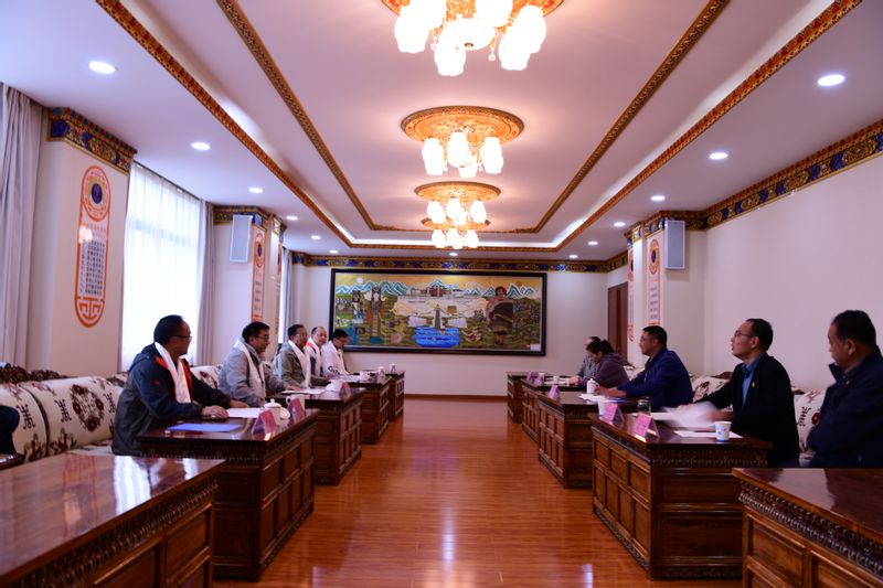 在方江平陪同下,郑健一行参观了西藏大学校史馆、藏文典藏室。