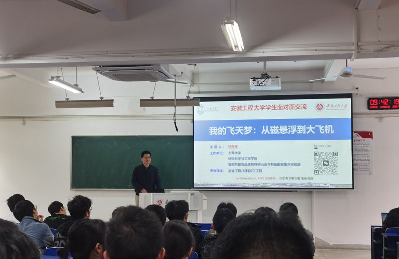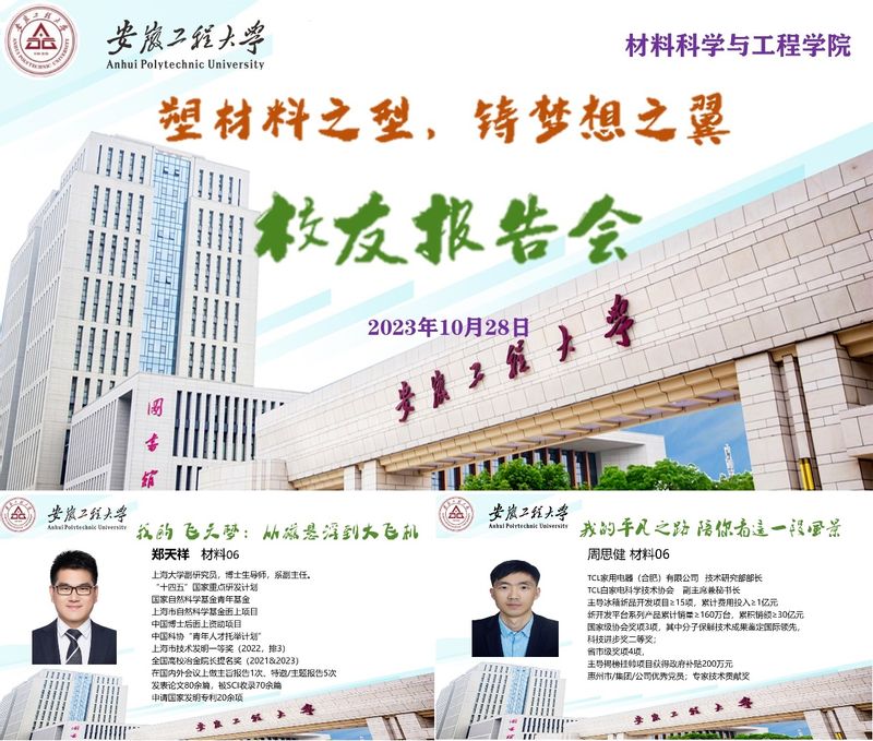 2023年10日28日上午,小宝寻花 材料06级校友郑天祥、周思健、胡正杰和材料10级校友俞燕应邀在6教212教室作主题为“塑材料之型,铸梦想之翼”的报告会。报告会由学院副院长陶锋主持,材控专业22级和23级全体学生及兼职辅导员参加此次活动。副院长陶锋指出材料成型及控制工程专业拥有四十年办学历史,是材料学院的办学之源,已为社会培养了近4000名具有创新精神和实践能力的优秀人才。多年来,我们的校友们在各自的领域中取得了卓越的成就,为社会和国家的发展做出了重要的贡献。校友们一直关注和支持母校的发展,我们的每一次进步和发展都离不开校友们的大力支持和帮助。