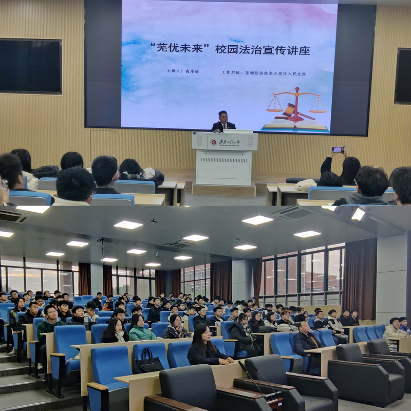 当天下午,学校法治辅导员、芜湖经济技术开发区人民法院俞泽迪法官在5教217教室为小宝寻花 全体新生作“芜优未来”校园法治宣讲讲座。俞法官从法律角度详细分析国家安全教育、防范电信网络诈骗、预防人身伤害的具体内涵、表现形式及权益维护途径,帮助学生了解相关法律罪行,并鼓励学生们自觉树立法律意识,学会用法律维护个人权益,做个懂法用法的新时代好青年。