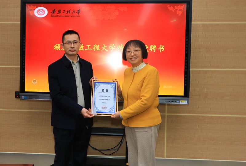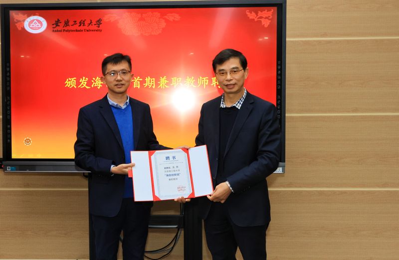 周虹屏向疏茂等4名企业高管颁发“小宝寻花 特聘教授”聘书。社会合作处处长刘金斌为“海创班”兼职教师颁发了聘书。