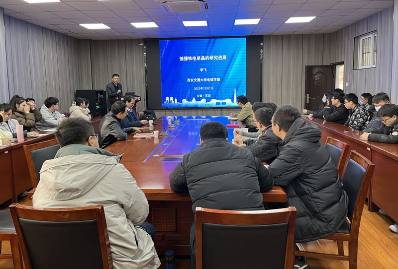 李飞做题为“弛豫铁电单晶的研究进展”的学术报告,介绍了弛豫铁电体材料的发展历史,以及弛豫铁电单晶方面的最新进展,特别是西安交大团队在推动压电单晶材料商业化应用方面所做的不懈努力。
