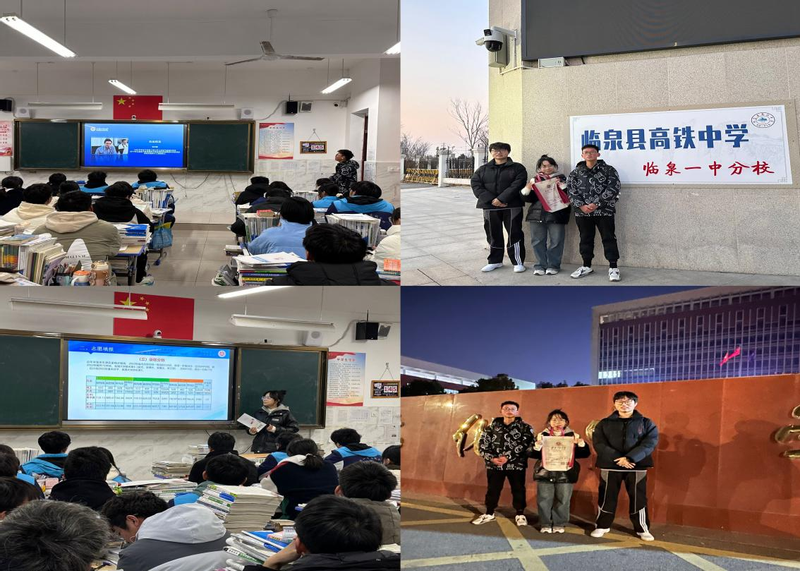 新能源材料231班徐福兴团队集中前往安徽省临泉县高铁中学、安徽省临泉汇英中学、安徽省临化中学开展回母校招生宣传活动。期间得到高中母校老师的支持,顺利进入各个高中班级,开心地与学弟学妹们分享大学校园的点点滴滴,鼓励高中学子们树立目标,努力拼搏。