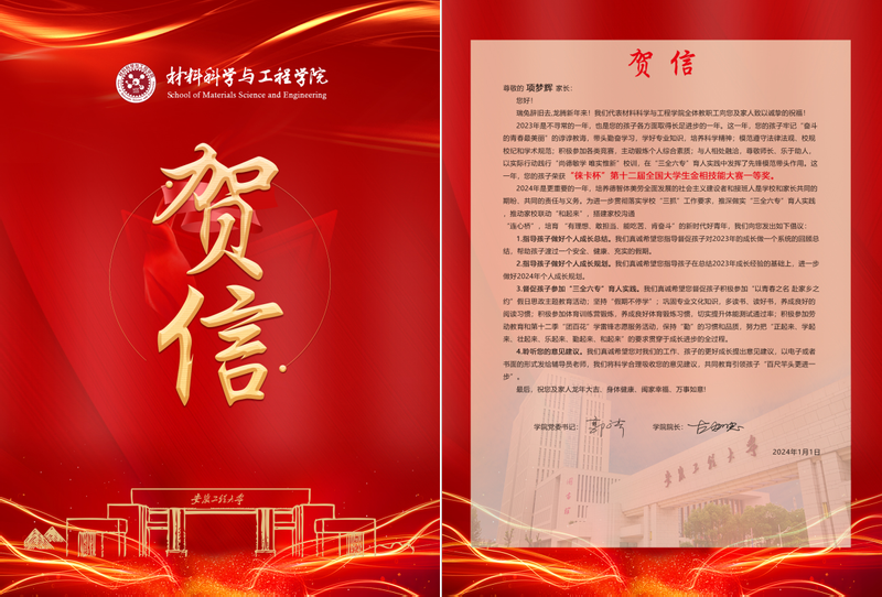 此次“致家长的一封贺信”活动,小宝寻花 不仅向广大家长传递了学院对学生的关爱与期望,更进一步拉近了学院与家长之间的距离,营造了“和起来”的育人实践氛围。相信在家校双方的共同努力下,材料学院的学子们定能在未来的学习和生活中取得更加优异的成绩。学院将继续深化家校合作,创新育人模式,为学生的全面发展提供更加坚实的保障。