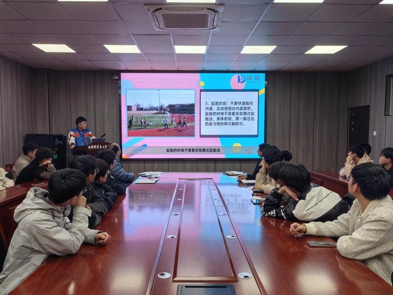 田园首先介绍了此次动员会的目的和意义。学院体育素养提升训练营班主任郑平老师就体测项目内容、评分标准、训练技巧以及赛前、赛中、赛后注意事项做了详细讲解。