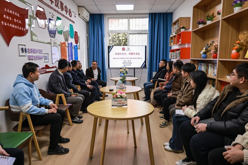 学院党委书记、芜湖市政协委员郭广春汇报了“委员工作室”坚持结合融合的工作思路、方法,以及依托学生宿舍青年议事中心这个阵地开展的主要工作,详细介绍了旨在服务引领青年的“青翼”主题沙龙品牌,是将青年议事与政协委员履行职责、联系界别群众、服务青年发展结合起来的具体实践,是新时代“枫桥经验”在宿舍的实践与创新。在芜湖市政协和学校党委的领导下,“郭广春委员工作室”将继续依托一站式服务社区、学生宿舍青年议事中心,推进“请你来政协、有事好商量”平台在安工程落地实践,服务青年发展、服务省域副中心城市建设。