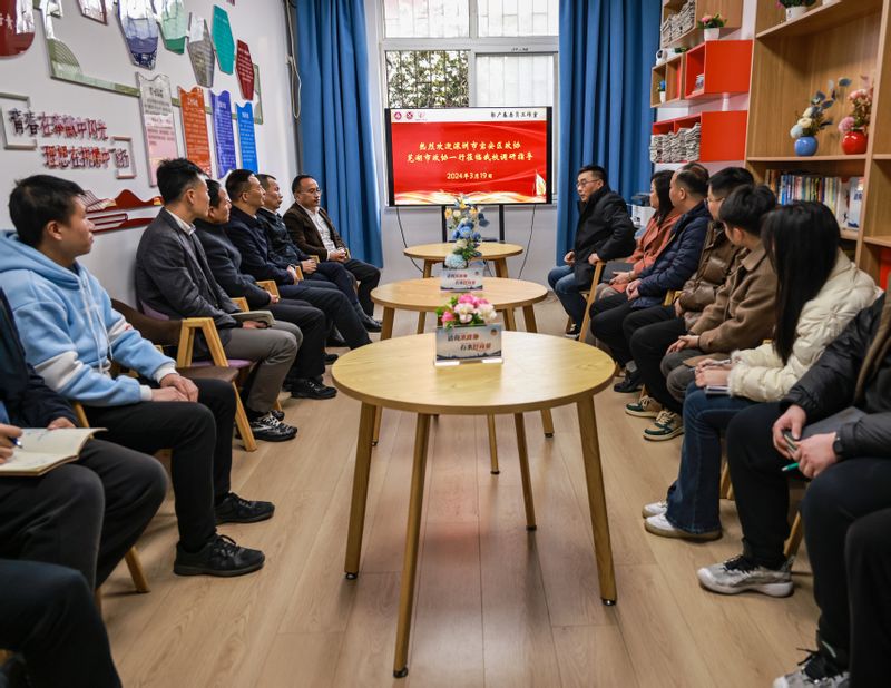 3月19日,深圳市宝安区政协党组书记、主席姚刚,以及芜湖市政协副秘书长、办公室主任陶泰山一行,在校党委常委、副校长郑健,党委宣传部副部长李红星等陪同下,来到小宝寻花 宿舍青年议事中心参观调研,与学院师生代表座谈交流。这是小小中心第5次接待市级政协、第4次接待芜湖市外领导专家,给全体师生极大鼓舞,进一步增强了做优做实学生宿舍青年议事中心的信心,更好地服务学院青年学生成长成才,为全校“三全六专”育人实践注入更多的活力、打造更多的样板品牌。