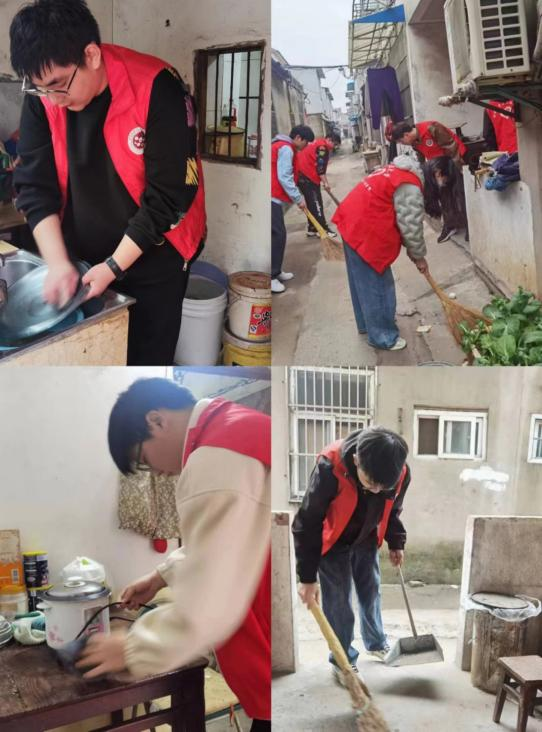 志愿者帮助老人整理内务,打扫卫生,联系社区工作人员更换老人家中破裂的水管,并了解老人生活中的困难和身体健康状况,叮嘱老人要健康饮食,爱护身体,遇到困难及时寻求社区的帮助。