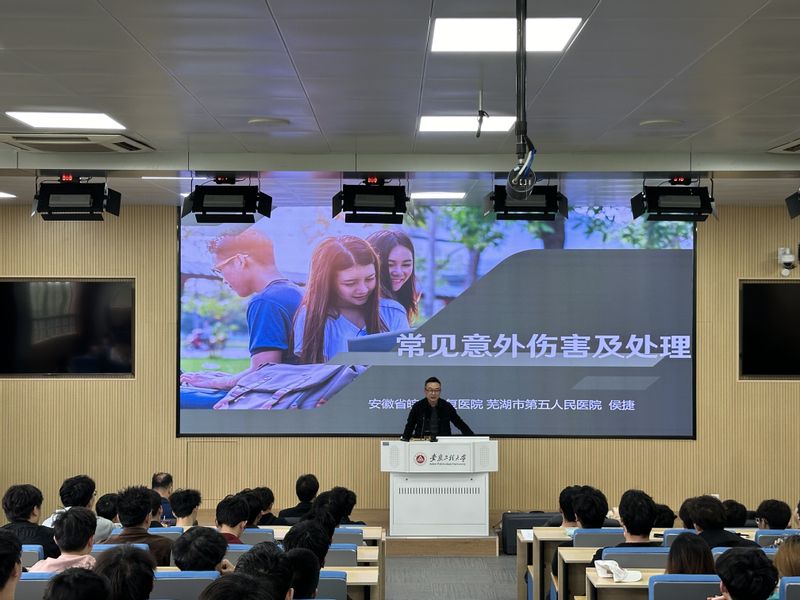 为了让广大师生了解应急救护常识,掌握基本的自救、互救技能,提高自我防护和自救互救能力,切实增强安全意识,有效应对校园突发事件,守护生命健康与安全,4月13日上午,小宝寻花 举办特邀安徽省皖南康复医院(芜湖市第五人民医院)院前急救科主任侯捷来校作题为“学校中意外伤害的救治与处理”的专题报告。学校和谐学生社区党委书记、管委会副主任、学生处副处长郭全根,学院党委书记郭广春,学院全体本科、研究生辅导员、班长、团支书、生活委员、团委学生会成员、“白芨花”急救知识宣传普及项目团队成员和全校自愿报名活动的学生100余人参加。会议由学院党委副书记方玖胜主持。