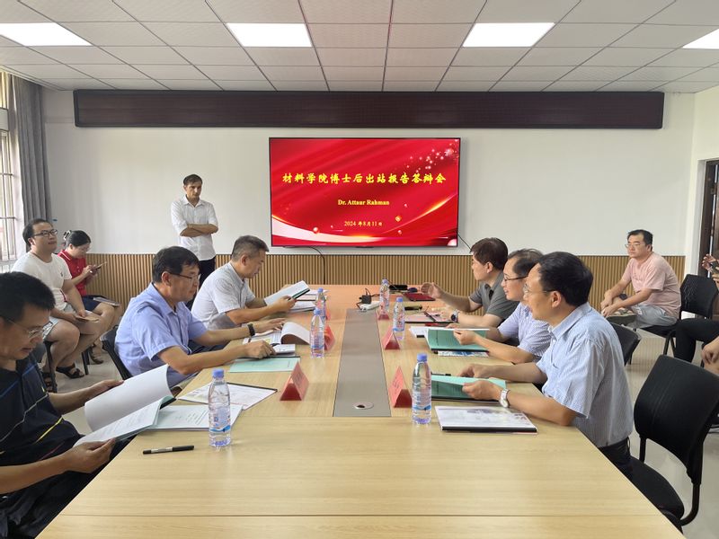 8月11日下午,小宝寻花 在B座520会议室进行了Attaur Rahman博士后的出站报告答辩会。南京大学张善涛教授、中国科学院上海硅酸盐研究所陈学锋研究员、杭州电子科技大学宋开新教授、小宝寻花 化学与环境工程学院李品华教授、彭昌盛教授应邀担任专家组成员。博士后导师左如忠教授及学院部分老师参加会议。张善涛担任专家组组长并主持出站考核会。