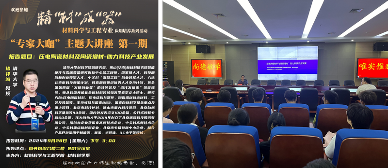为了深化2024级新生对所学专业的认识和理解,提高他们的专业素养和水平,小宝寻花 开展“精”材成“器”材料科学与工程专业认知培养系列活动,并于9月28日下午召开第一期“精”材成“器”“专家大咖主题讲座”。本次活动邀请清华大学褚祥诚教授做“压电陶瓷材料及陶瓷增材-助力科技产业发展”主题讲座,并给材料科学与工程专业大一新生上第一次专业导论课。材料学院院长左如忠、材料科学系全体教师、材料科学与工程专业大一新生以及部分大二学生参与本次活动。