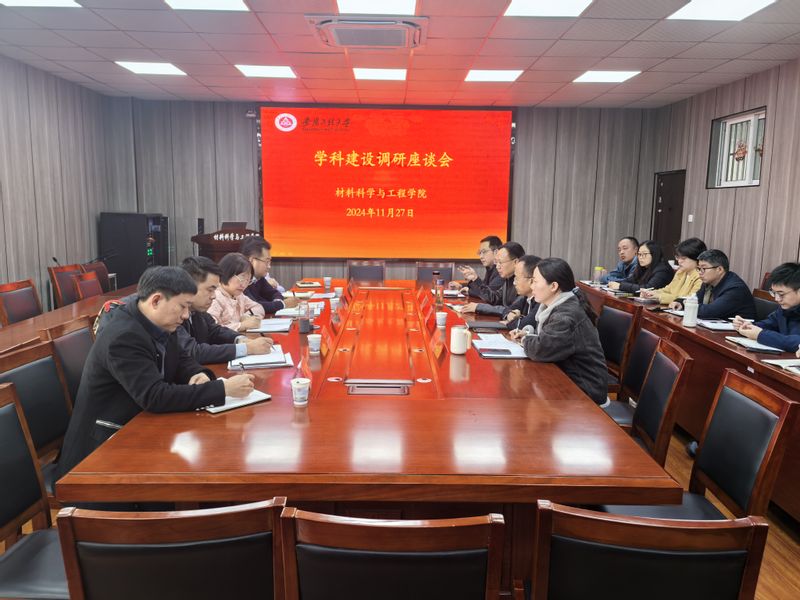会上,学院院长左如忠汇报了学科建设的基本情况,分析推进材料学科建设过程中存在的问题与挑战。各职能部门负责人就学科建设发展的具体问题进行回应,并为学院的建设和发展提出中肯的意见建议。学院党委书记郭广春就研究落实调研座谈会提出的意见建议进行表态发言。