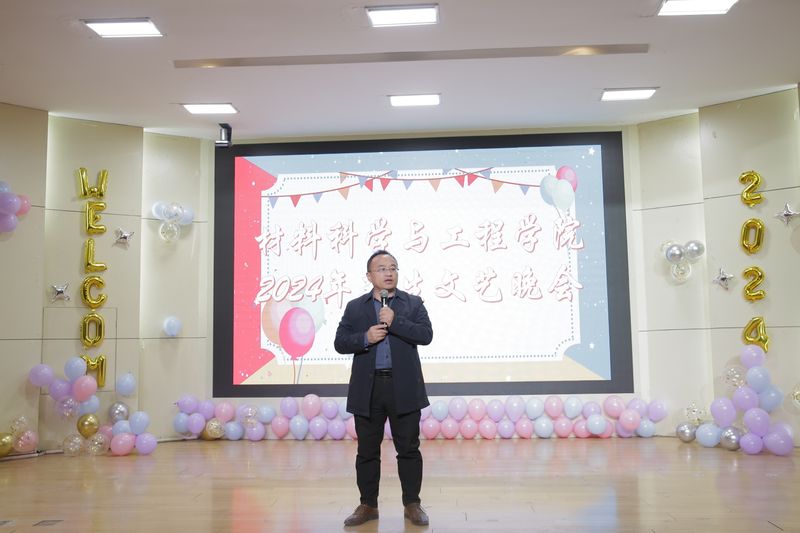 郭广春为晚会致辞,他满怀深情地回顾了2024级新生入学以来学院各系部开展的丰富多彩、形式多样的新生入学教育活动,他指出大学是追求知识、实践成长、迎接挑战的新征程,鼓励2024级材料人要勇敢追梦、勤奋筑梦、努力圆梦,在人生崭新的舞台上发光发热!最后,他为大家送上了新的一年诚挚的问候与亲切的祝福,并祝愿晚会圆满成功。