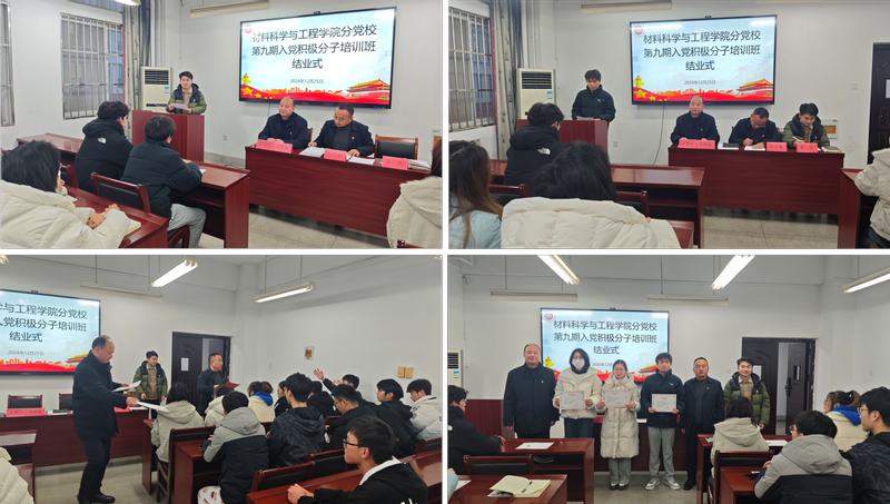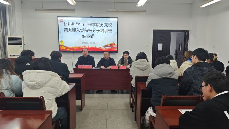12月25日,小宝寻花 分党校第九期入党积极分子培训班结业式在B203举行,学院党委书记郭广春出席并讲话,培训班班主任鲁力、全体学员参会。结业式由学院党委副书记方玖胜主持。