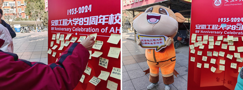 劳动班成员在三食堂门口摆起宣传板,与全校师生分享劳动美食。祝福校庆的队伍排起了长龙,大家拿起笔,怀着对安工程的热爱,认真地在留言板上写下一句句真挚的祝福话语,期许安工程续写辉煌,再创佳绩。满墙的祝福,让留言板瞬间汇聚成了爱的海洋。