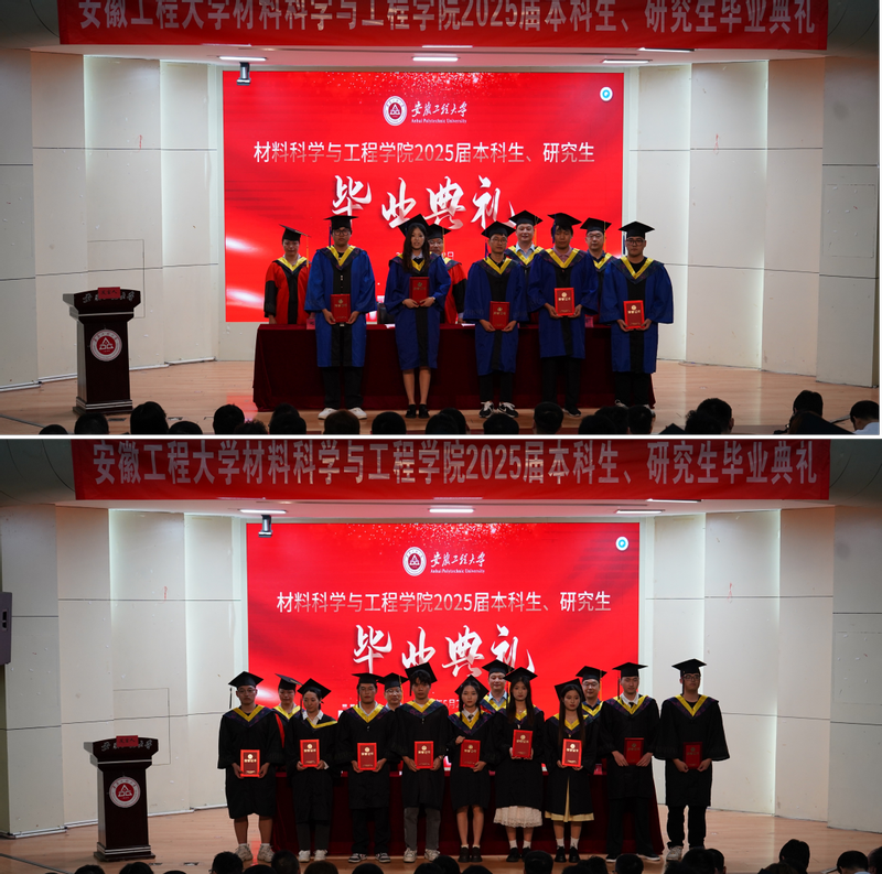毕业典礼在庄严的国歌声中拉开序幕。院党委书记孙宏义用三个关键词寄语全体毕业生,深耕:从“被动接受”到“主动探索”,学会在前人的经验中寻找灵感,在亲身实践中验证假设,在失败中总结规律;转身:主动调整心态,培养“角色意识”,学会合理利用身边资源、培养独立解决问题的能力、形成良好的时间管理习惯;破茧:在挫折中保持定力,面对挫折时,将压力转化为动力,在挫折中沉淀自我。他祝福毕业生以材料人的坚韧与创新,书写人生的精彩篇章!