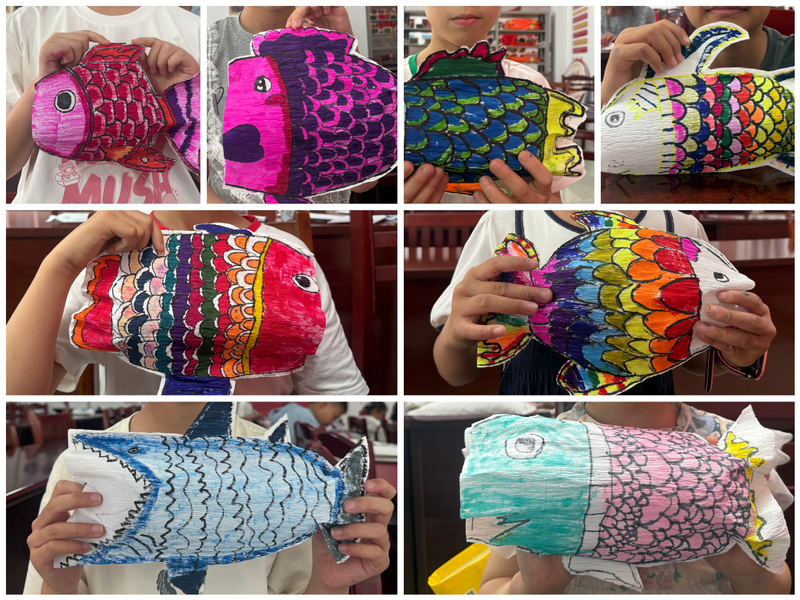 成员用图片和视频展示无为鱼灯的魅力,讲解其历史渊源与制作工艺后,带领孩子们动手制灯。孩子们发挥想象画五彩小鱼,再做成鱼灯。这一过程培养了想象力和动手能力,增强文化认同感与自信,激发传承责任。无为鱼灯承载长江渔文化,象征丰收与平安。