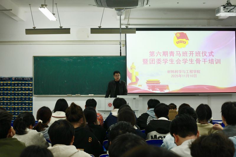 方玖胜代表学院党委向入选本次培训的全体同学致以热烈的祝贺和殷切的期望!他希望,全体学员要锚定信仰坐标,深学细悟“青马”精神,把爱国情、强国志融入材料专业学习,以“强国有我”的信念深耕科研、锤炼本领,让青春理想与时代同频;要锤炼过硬本领,珍惜理论讲解、案例分析、实践交流等培训机会,在沟通协调、活动策划、应急处置等实战场景中补短板、强弱项,练就服务同学、推进工作的“真功夫”;要厚植服务情怀,始终把同学需求放在心上,当好学院与师生的“连心桥”“传声筒”,以务实作风破解实际问题,用责任担当赢得信任与支持,在奉献中实现青春价值。