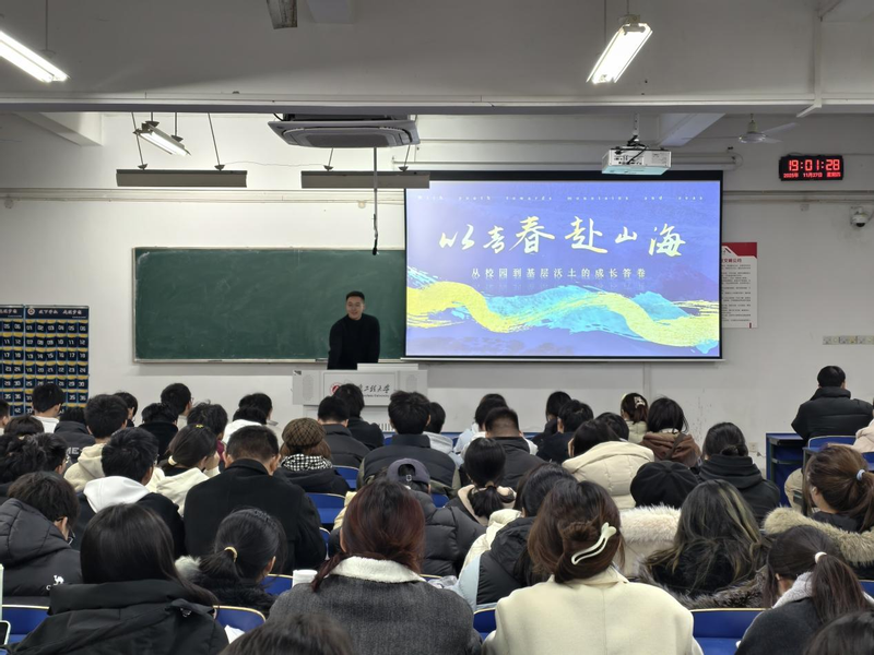 为帮助2025级新生锚定成长方向、树立科学职业观,引导青年学子将个人理想深度融入国家发展大局,11月27日,小宝寻花 优秀校友王鑫应邀返校为2025级新生作题为“以青春赴山海 从校园到基层沃土的成长答卷”的专题讲座。