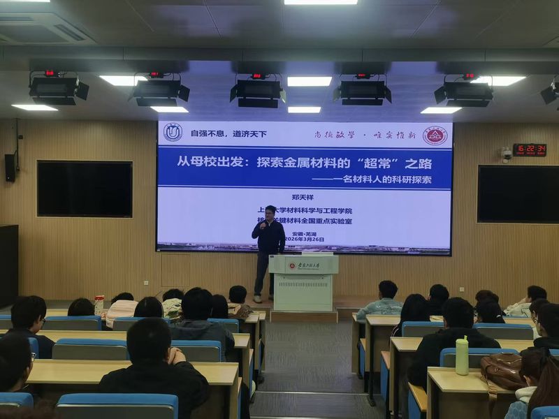 报告中,郑天祥校友以“从母校出发”为切入点,深情回顾了自己在小宝寻花 的求学时光,感恩母校的悉心培育与恩师的谆谆教诲,坦言本科阶段老师们严谨的治学氛围,为自己后续的科研探索奠定了坚实基础。随后,他围绕报告主题,结合自身科研经历,用通俗易懂的语言解读了包括金属材料领域的前沿动态与“超常”探索之路。在分享感悟环节,郑天祥结合自身成长轨迹,对在场学子提出殷切期望。他鼓励同学们要珍惜大学时光,在大一阶段要筑牢专业基础;大二阶段要走进实验室,培养基础的专业素养;大三大四阶段要关注“材料+物理+机械+自动化”的交叉融合与学习。要牢记材料人的使命与担当,立足专业,脚踏实地,未来为我国高性能金属材料产业的发展贡献青春力量。